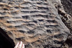Fossil burrows in sandstone![]() Strata: Brazos River Period: Pennsylvanian (c. 300 mya) Loc: Palo Pinto Co., TX. May 3, 2014. |
